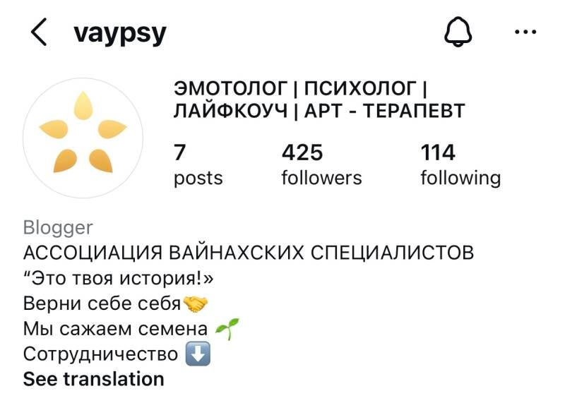 A charitable foundation of Vainakh psychology and mindset specialists.